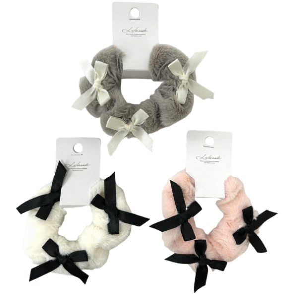 蝴蝶結柔軟蓬鬆大腸髮圈(1入)(款式隨機出貨)