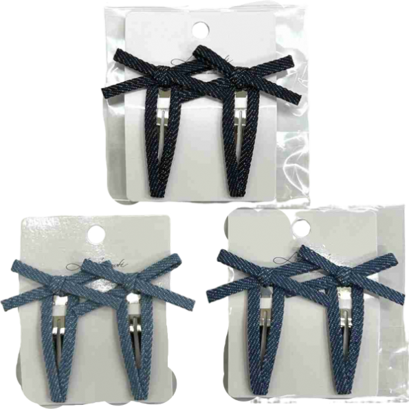 牛仔丹寧線條蝴蝶結髮夾(2入)(款式隨機出貨)