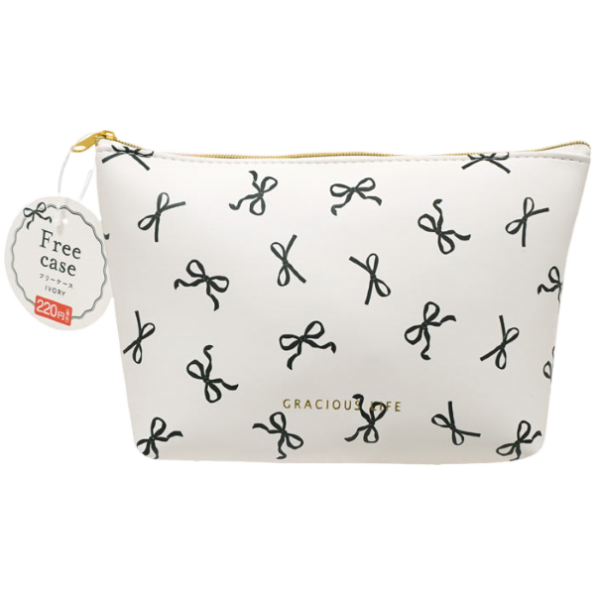 (H)蝴蝶結印花化妝收納包(白色)(1入)
