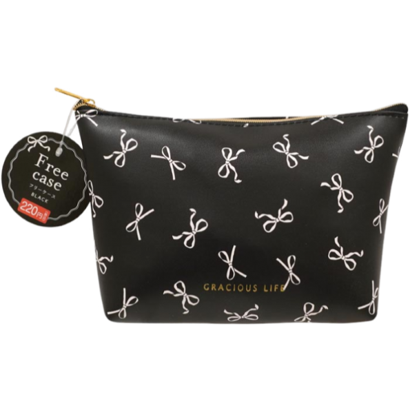 (H)蝴蝶結印花化妝收納包(黑色)(1入)