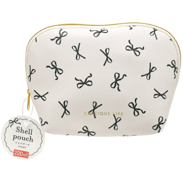 (H)蝴蝶結印花貝殼型化妝收納包(白色)(1入)