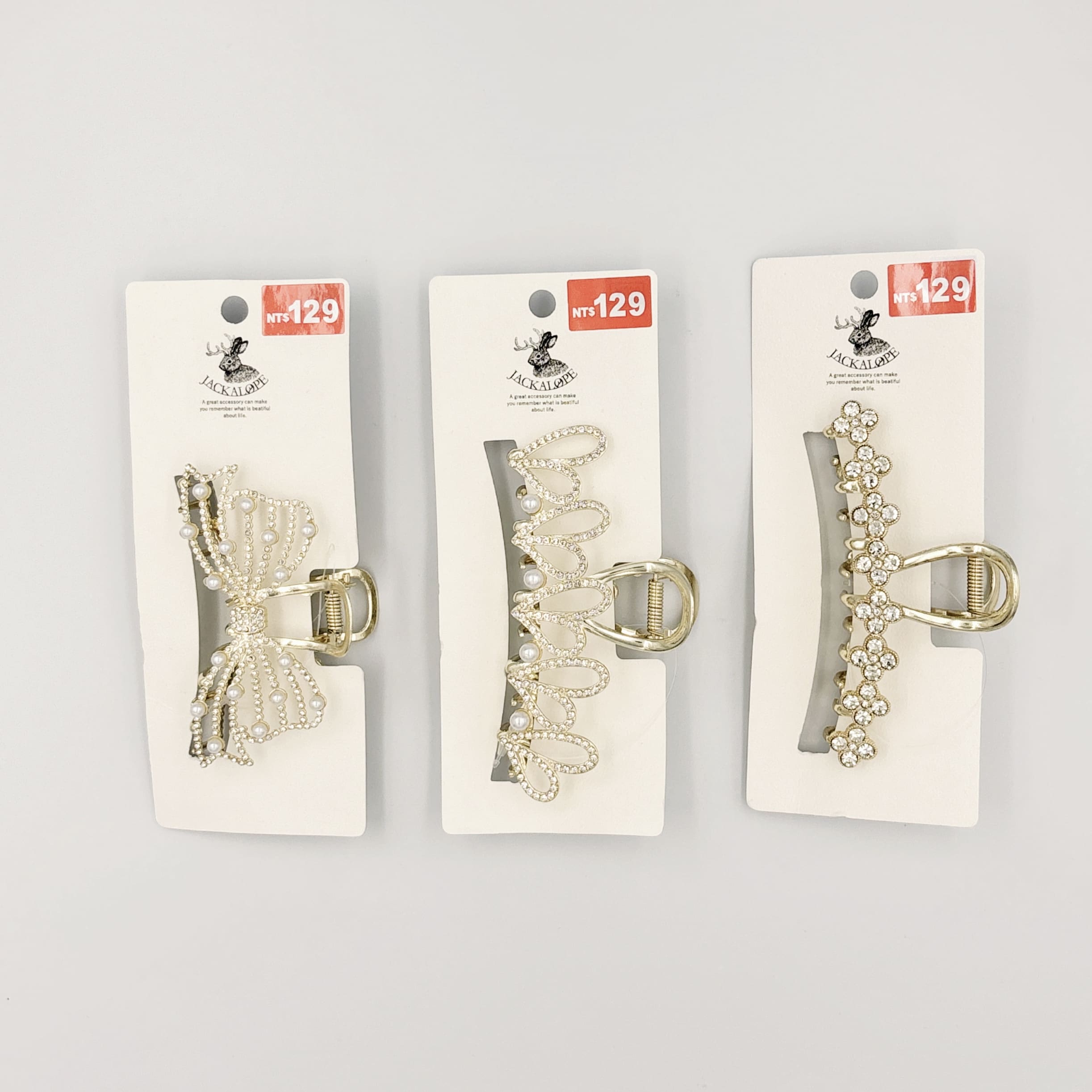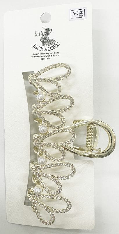 (H)JL珍珠寶石不對稱愛心髮夾(1入)