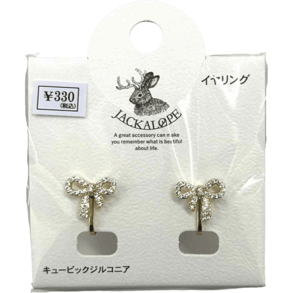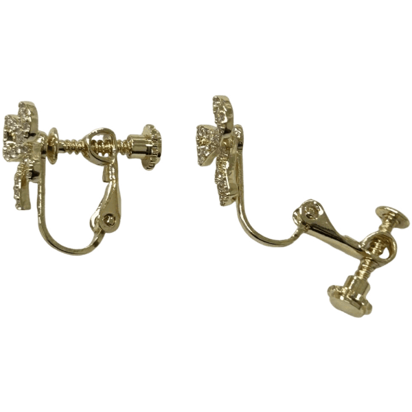 (H)JL- 蝴蝶結金色鋯石耳環(夾式)(1對入)