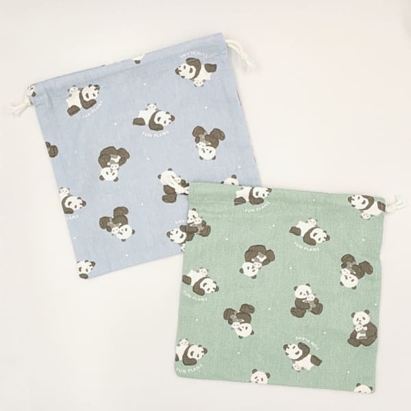 貓熊印花棉布抽繩束口袋(1入)(款式隨機出貨)