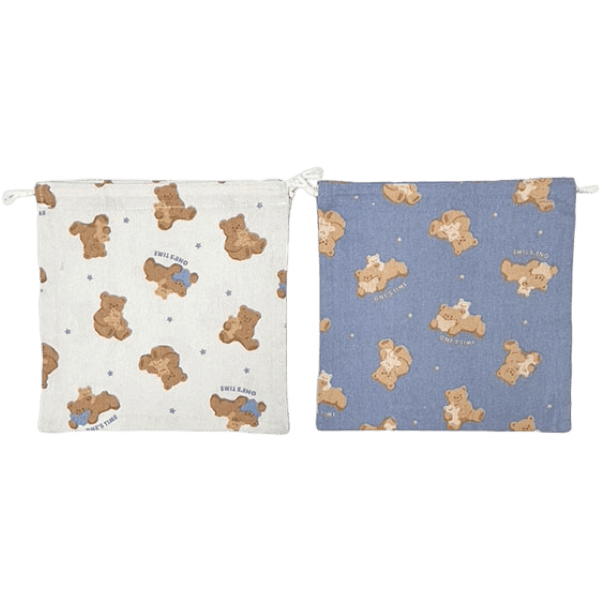 小熊印花棉布抽繩束口袋(1入)(款式隨機出貨)