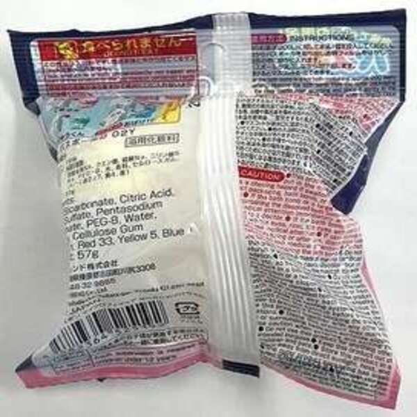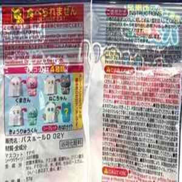 商品材質: (玩偶):TPR(熱塑性橡膠)板材零件:ABS(丙烯腈-丁二烯-苯乙烯共聚物)樹脂,沐浴添加物:碳酸氫鈉、檸檬酸、硫酸鈉、三聚磷酸五鈉、PEG(聚乙二醇)-8、水、香料、羧甲基纖維素、[+/-]紅 227、黃 4、藍 1