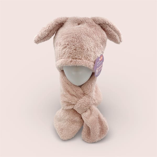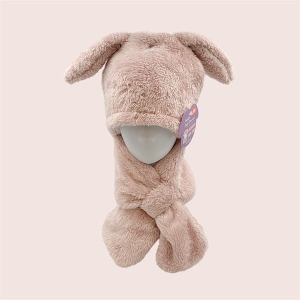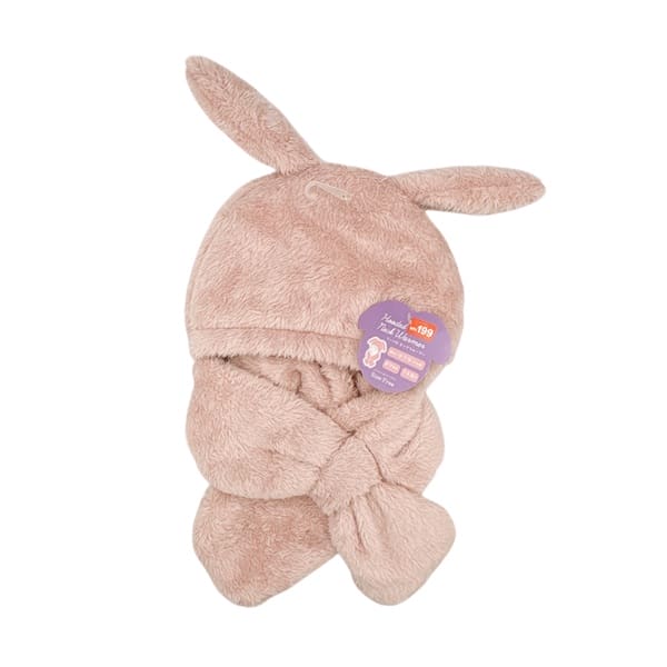 (H)粉色兔耳毛絨連帽頸圍巾(1入)