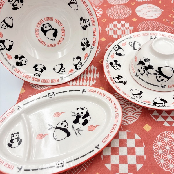 (H)中華風開心貓熊- 盤子 L(1入)