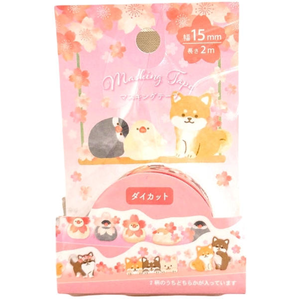 浪漫櫻花-文鳥與柴犬印花紙膠帶(1入)(款式隨機出貨)