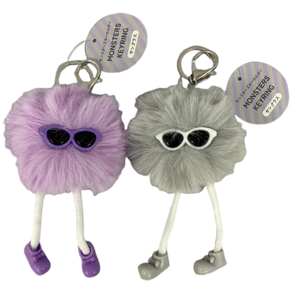 毛絨墨鏡造型小怪獸吊飾鑰匙圈(1入) (款式隨機出貨)